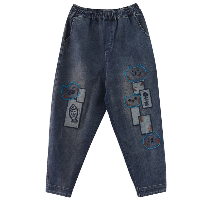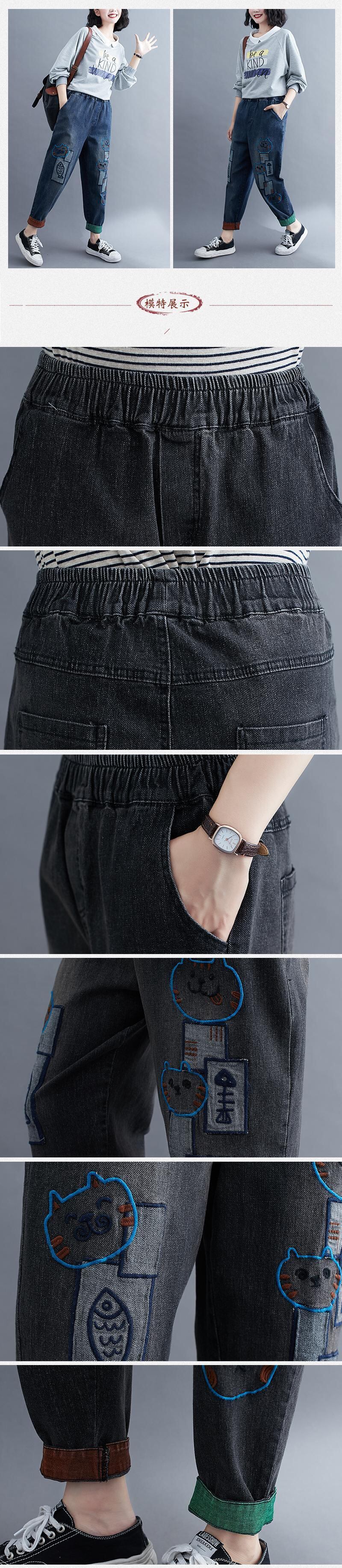 2020年秋ニューファットシスタールーズエイジリダクション漫画パッチ刺繡ハーレムパンツスリミングプラスサイズジーンズ女性 刺繍 大きめサイズ オータム 秋物 TB2-8 TB2-886189833791