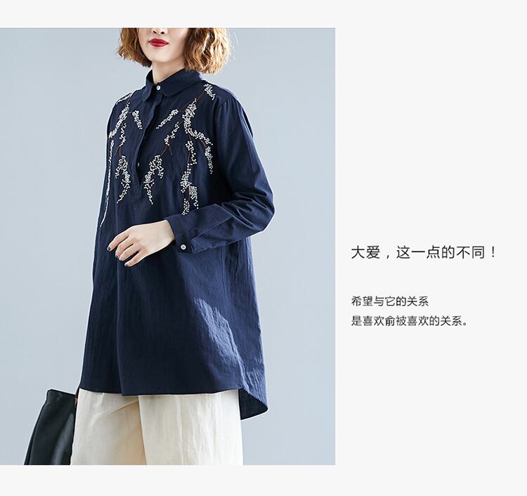 2020年秋新作長袖シャツレディースミドル丈ラペル刺繡文芸ファンシャツレディース刺繍トップス ロング レッド オータム 秋物 TB2-12 TB2-1285099983044