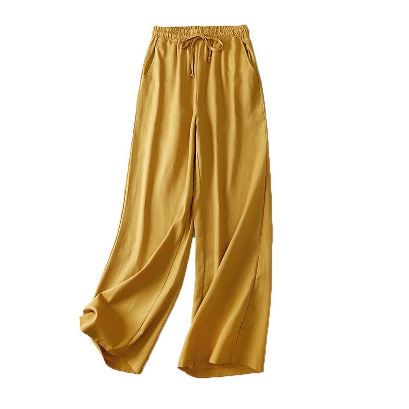 プリーツコットンとリネンのワイドレッグパンツ2021年夏の女性の新しいハイウエストの薄いフロアパンツ薄いルーズドレープストレートレッグパンツ サマー 夏物 TB2-12 TB2-1261540681484