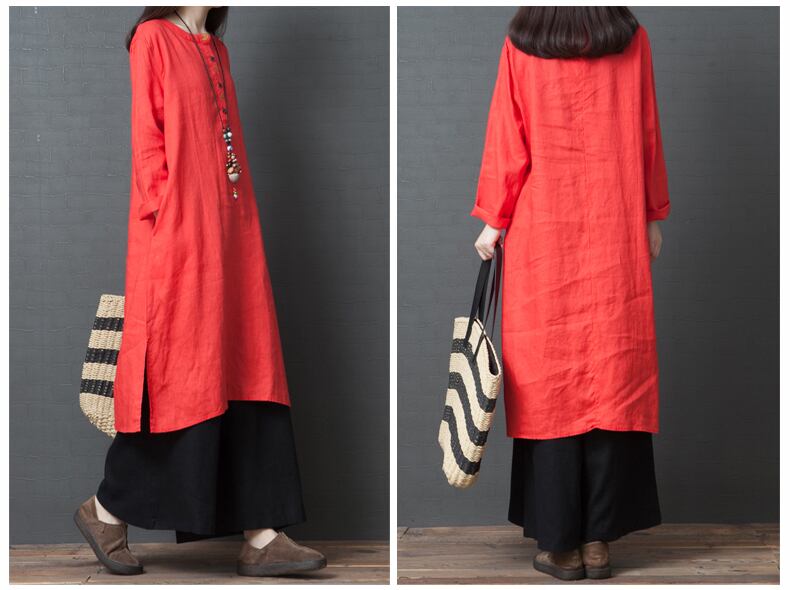 コットンとリネンのトップレディース2021年春夏大サイズ長袖無地無地薄手のリネンミドル丈Tシャツシャツスカートの新バージョン ロング 大きめサイズ スプリング 春物 サマー 夏物 ソリッドカラー TB2-12 TB2-1218322581821