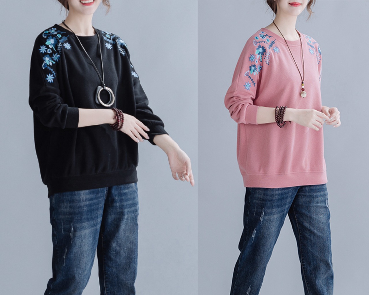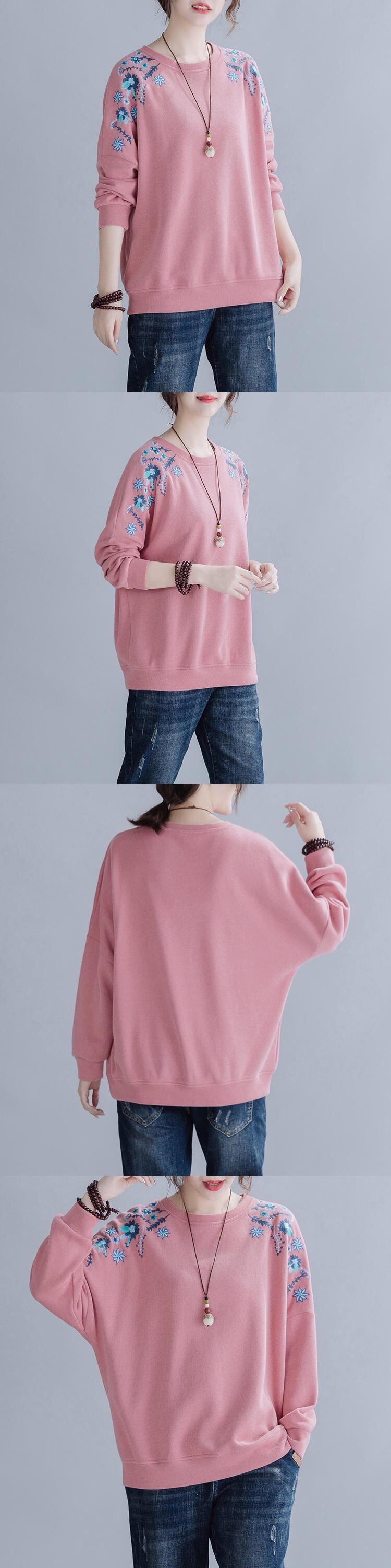 刺繍入りセーターレディースラージサイズ200kg脂肪mm冬ルーズラウンドネックプルオーバーブラウスは薄く、年齢を減らしたボトミングシャツ レッド 大きめサイズ ウィンター 冬物 Oネック TB2-8 TB2-859386776740