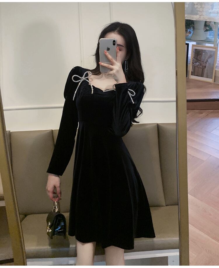 ラージサイズウエスタンスタイルレトロシンリトルブラックスカート女性年齢削減ベーススカート隠し肉気質ベルベットドレスファットシスター 大きめサイズ TB2-10 TB2-104169663685