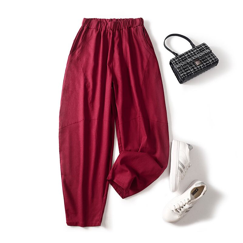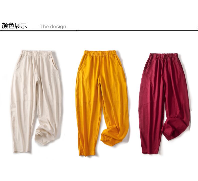 2021年夏のリネンハーレムパンツラージサイズ無地コットンとリネンパンツレディースカジュアルパンツルーズハイウエストシンキャロットパンツ ハイウェスト 大きめサイズ サマー 夏物 ソリッドカラー TB2-12 TB2-125131594833