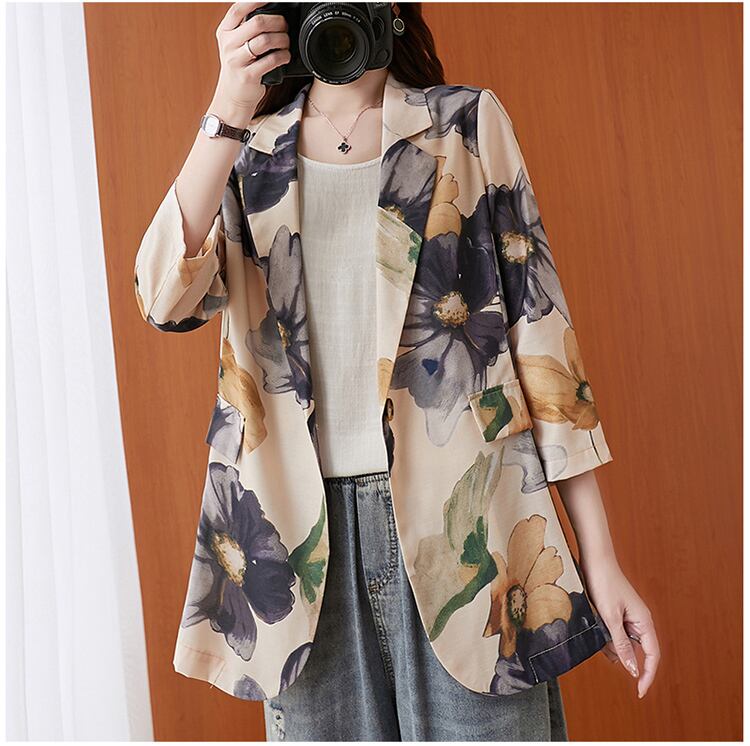 2021年春秋新作薄手のリネンスーツレディース七分袖カジュアルコットン&リネンスモールスーツルーズラージサイズジャケット 大きめサイズ スプリング 春物 オータム 秋物 TB2-12 TB2-1294927371487