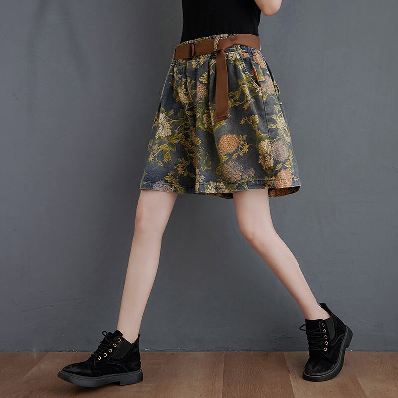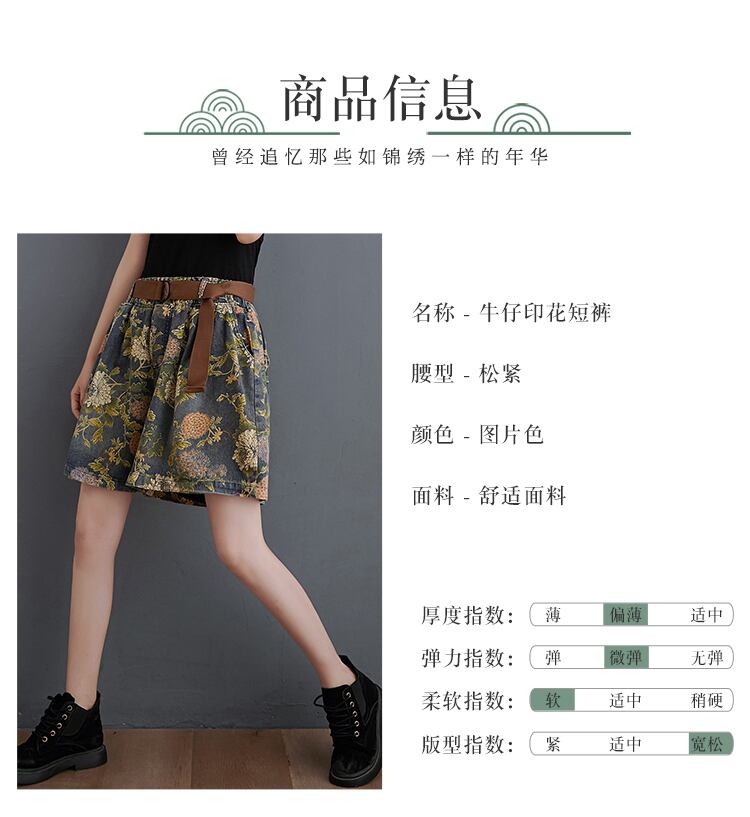 レトロリテラリープリントデニムショーツレディース2020新夏ルーズワイドレッグパンツオールマッチパンツ5点パンツ サマー 夏物 ブルマー TB2-8 TB2-845530718658