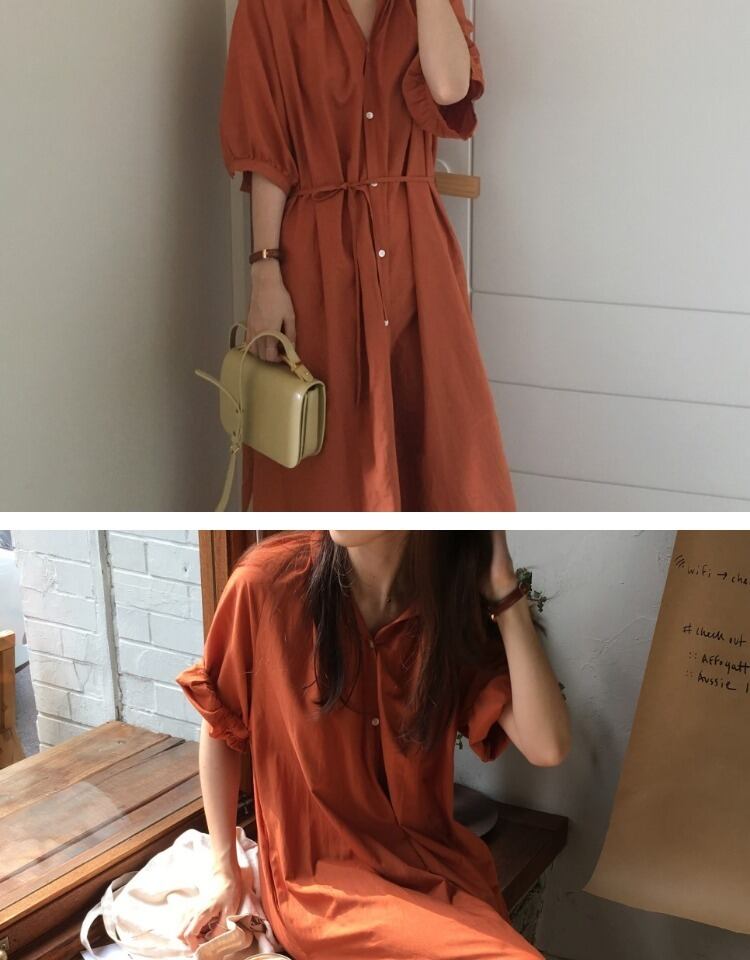 特大ルーズシャツスカート夏新作シンプル無地ファッションミドル丈5点袖ワンピース サマー 夏物 ソリッドカラー TB2-3 TB2-376584036635