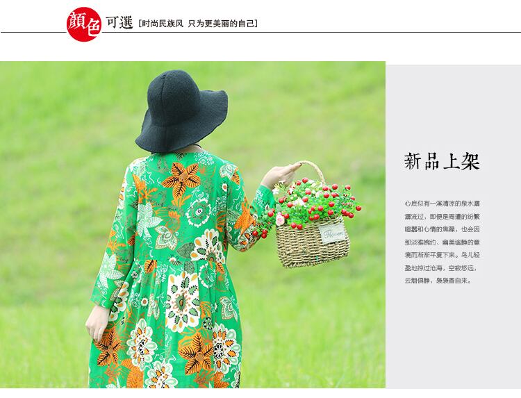 2021年春の新しいレトロなエスニックスタイルのスリムなスリミングプラスサイズの女性用コットンとリネンのプリントルーズロングドレス 大きめサイズ スプリング 春物 TB2-12 TB2-1298915516454