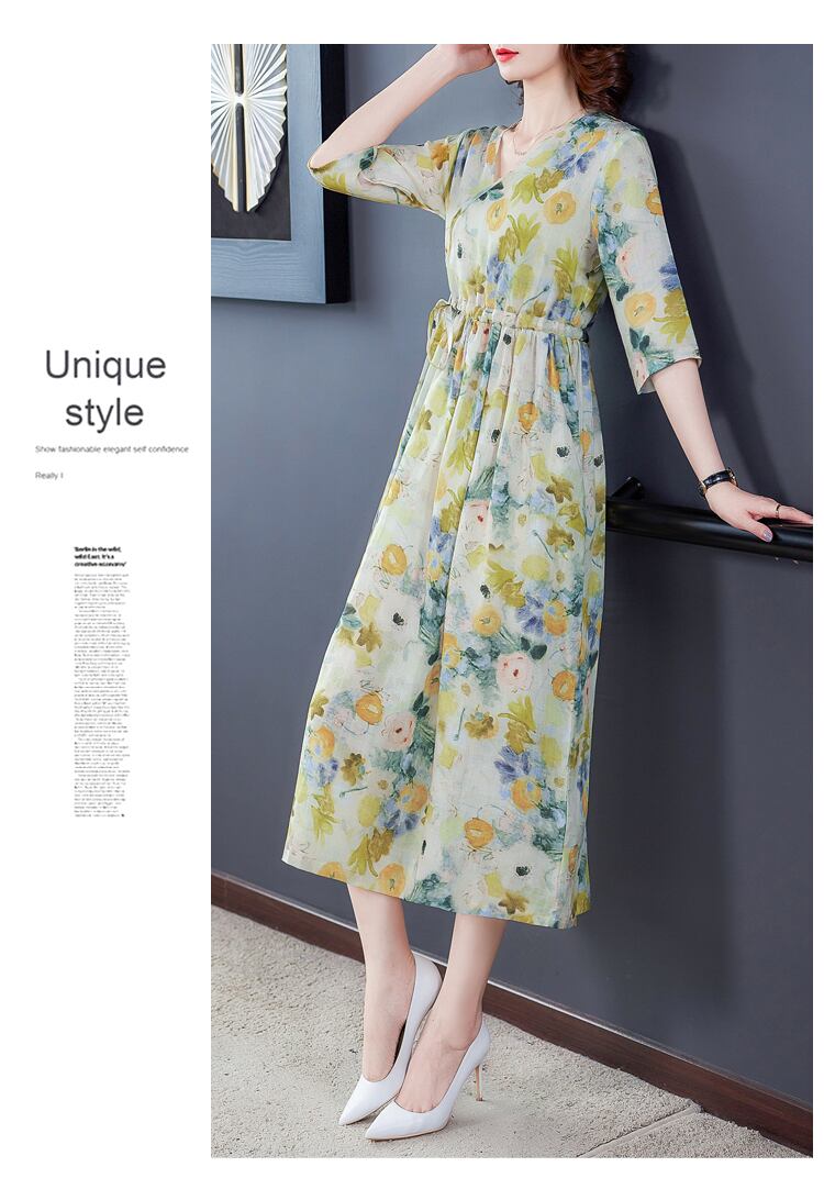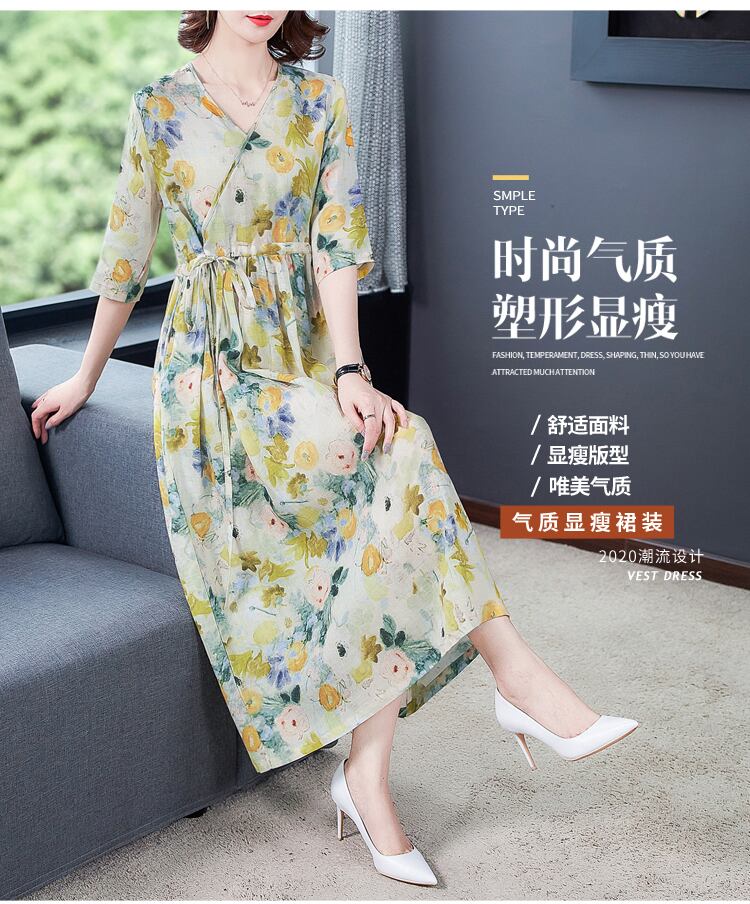 2021年夏の新しいスタイルの文学的なレトロなシルクとリネンのVネックドレス女性の巾着ハイウエスト細い腹のスカート ハイウェスト サマー 夏物 TB2-12 TB2-1236452547145