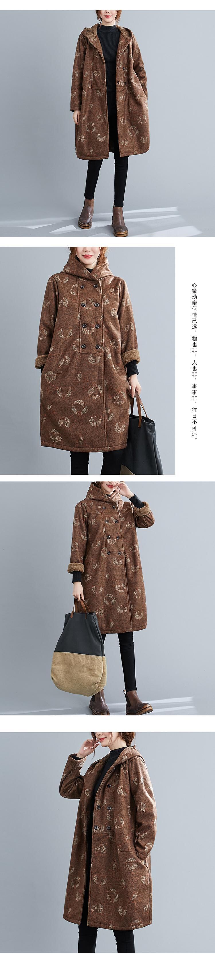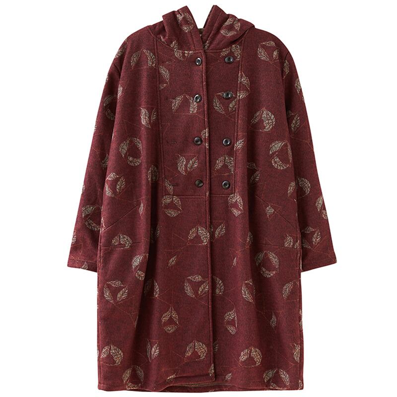 冬の新しいスタイルの文芸ルーズラージサイズプラスウールウールコートレディースミドルレングスレトロフード付きプリントウールコート 大きめサイズ ウィンター 冬物 TB2-12 TB2-1274291335325
