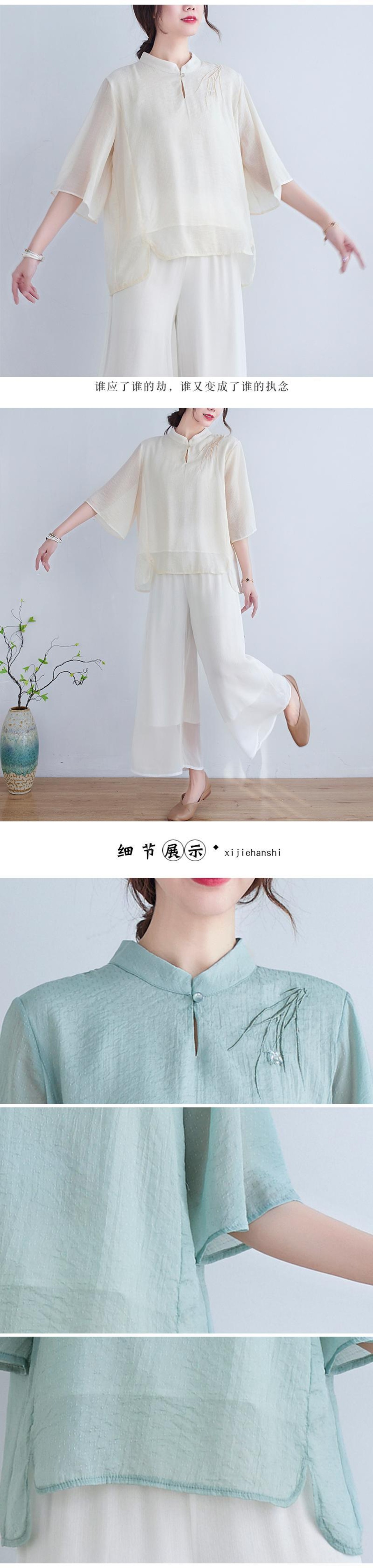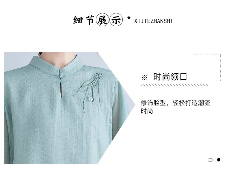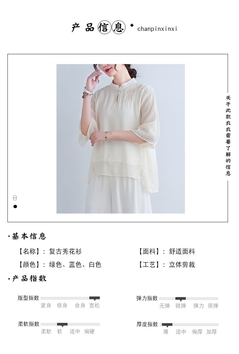 2021年の新しい半袖漢服の文学的および芸術的改善中国風の綿とリネンの緩い大きなサイズの無地の刺繡ブラウスチャイナドレスの女性 コットン 刺繍 大きめサイズ ソリッドカラー TB2-12 TB2-1226467217126