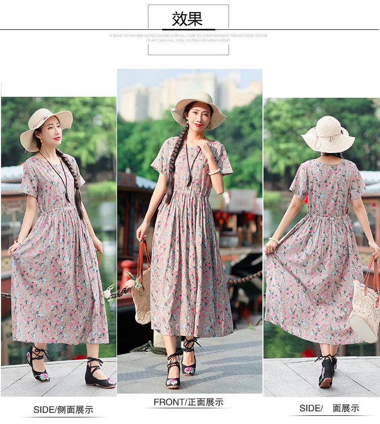 半袖コットンとリネンのプリントドレスレトロフローラルロングスカートラウンドネックネクタイボトミングスカート夏の新しいスタイルプラスサイズの婦人服 大きめサイズ サマー 夏物 花柄 Oネック TB2-12 TB2-126468075580