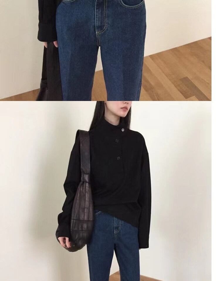 シックな春のニッチなデザインスタンドアップカラー斜めバックルルーズ無地カジュアルオールマッチ長袖シャツシャツ女性 ロング スプリング 春物 ソリッドカラー TB2-3 TB2-397897761140