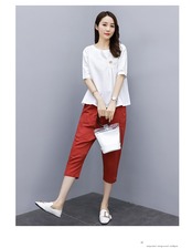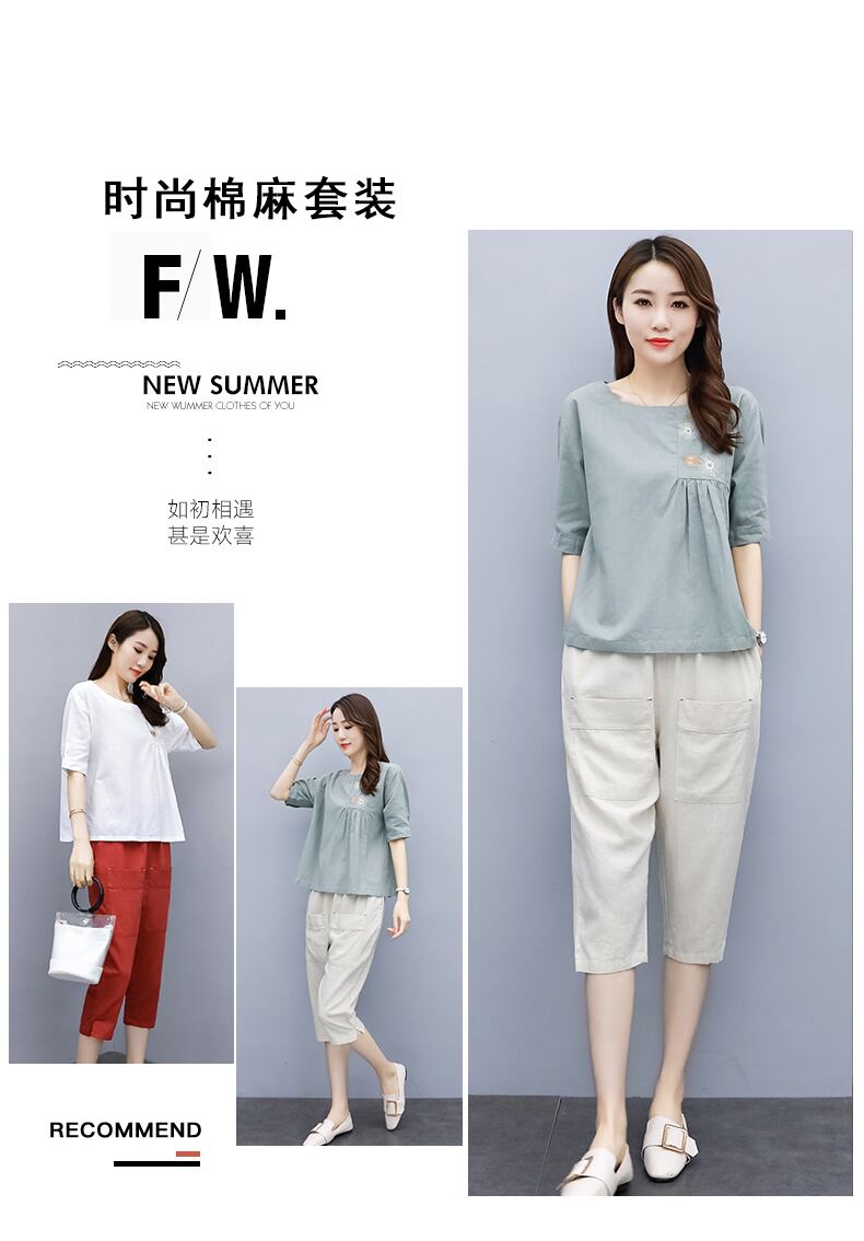 ウエスタンスタイルのコットンとリネンのスーツの女性の2020年夏の新しいスタイルのルーズな刺繍とサイズのカジュアルなクロップドパンツのツーピーストレンド 大きめサイズ サマー 夏物 TB2-12 TB2-1241989099320