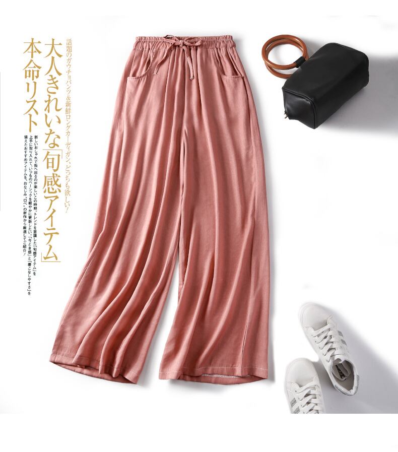 無地テンセルコットンワイドレッグパンツサマープラスサイズレディース伸縮性ウエスト巾着ネクタイドレープカジュアルストレートレッグパンツ エラスティック 大きめサイズ 夏物 ソリッドカラー TB2-12 TB2-1285431440838