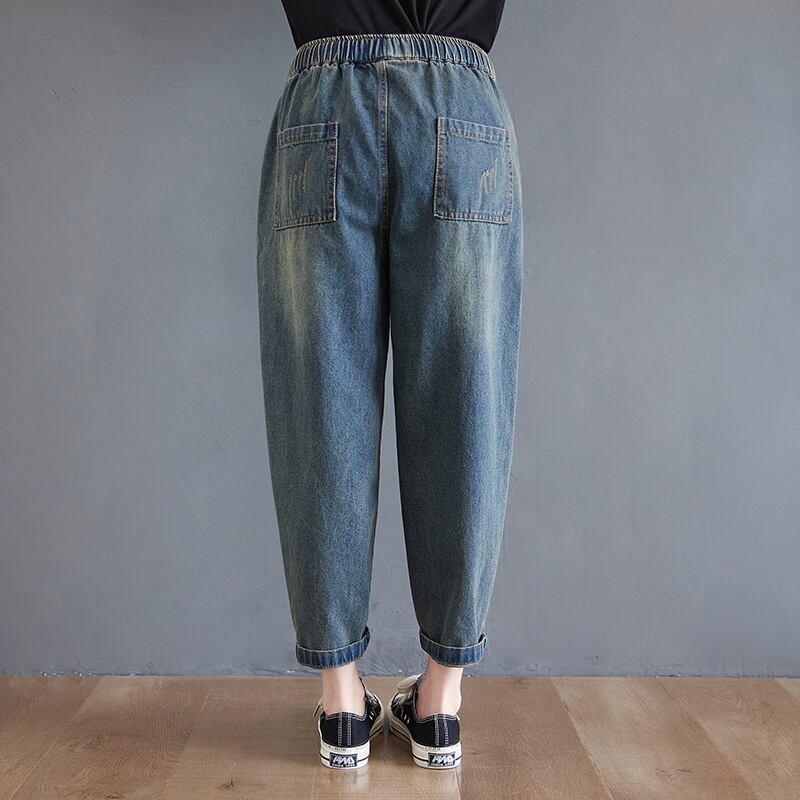 プラスサイズの2021年春の新しいズボン女性のレトロな古いデニムのクロップドパンツは、薄く、ハイウエストで、足の小さいハーレムパンツでした 大きめサイズ スプリング 春物 TB2-8 TB2-896327763928