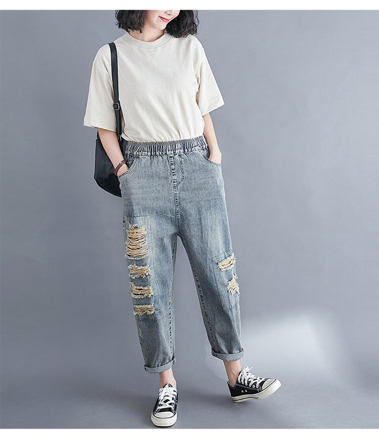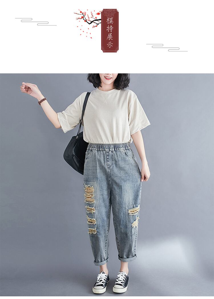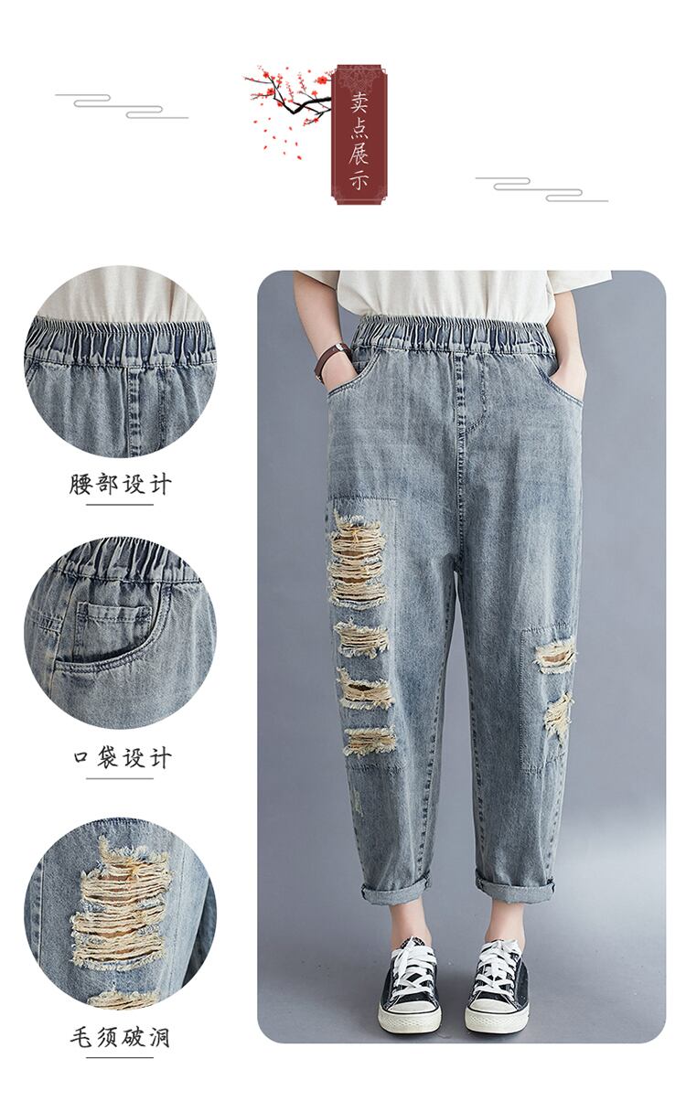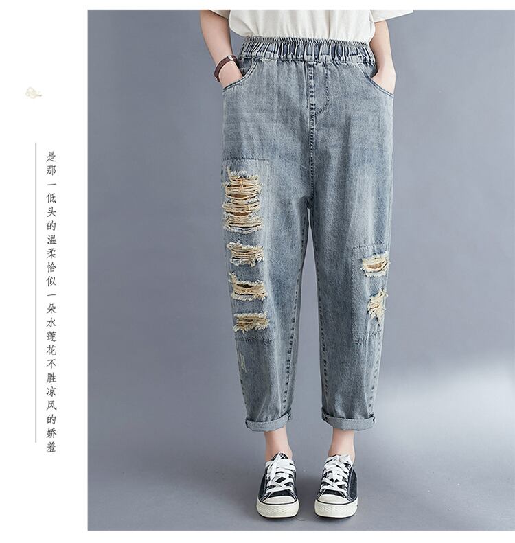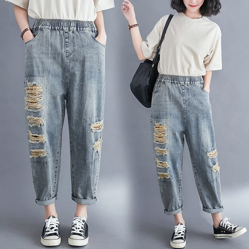 ルーズリテラシーウォッシュウォーターミルドホワイトハーレムパンツ女性の2020年夏新しいプラスサイズの女性のパンツは薄くて用途の広い破れたジーンズです 大きめサイズ サマー 夏物 TB2-8 TB2-868171270175