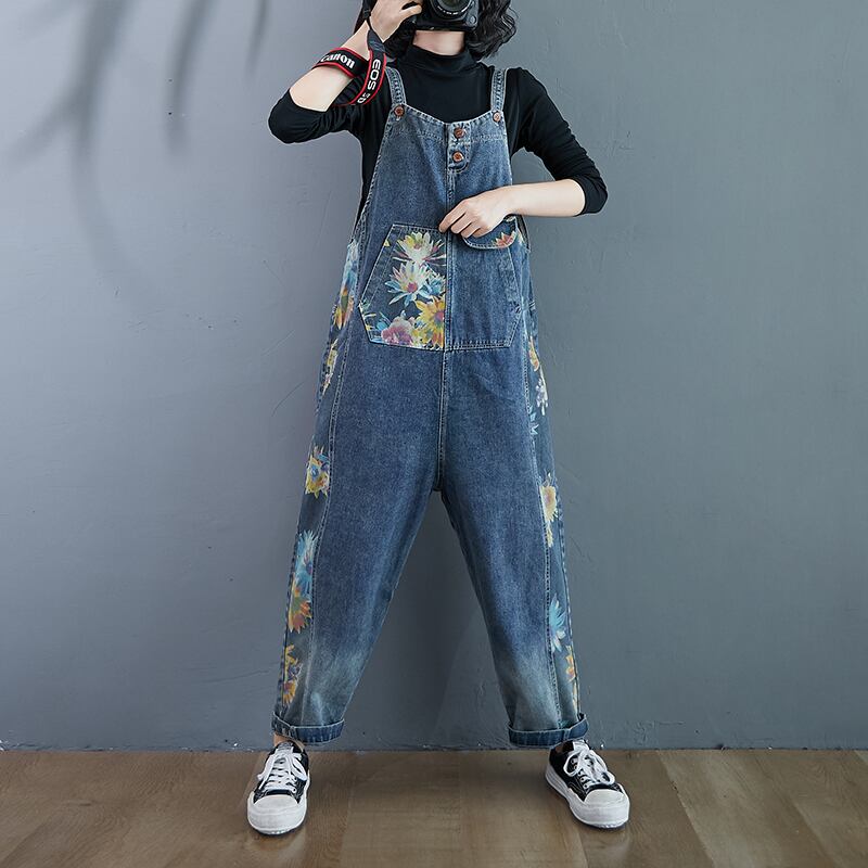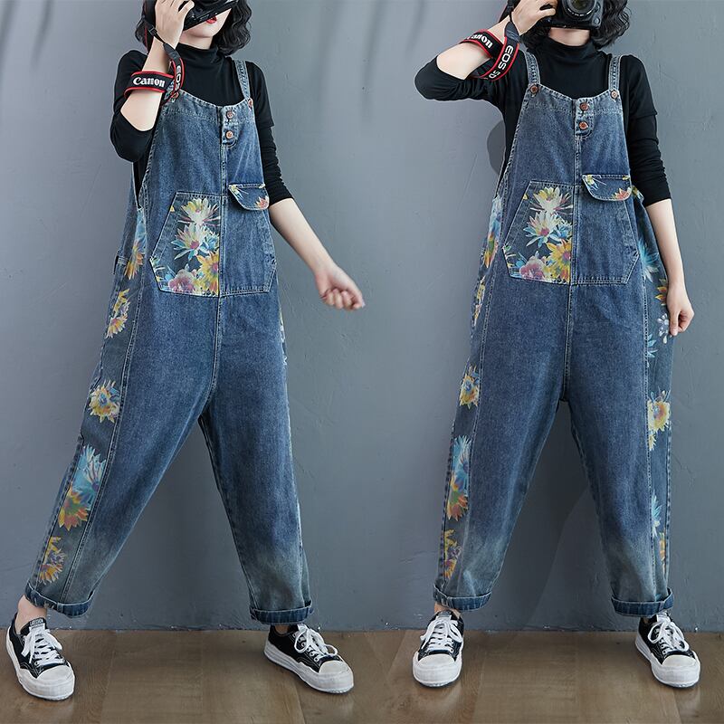 2021年春夏新作リアルジーンズラージサイズスリミング気質年齢減少ステッチプリントオーバーオール9点パンツレディース 大きめサイズ スプリング 春物 サマー 夏物 TB2-12 TB2-1238005369919