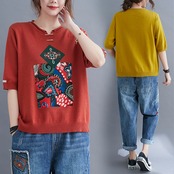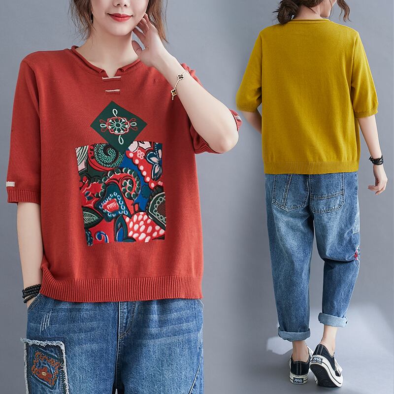 Xiaofeijia〜レトロなエスニック半袖トップ2021夏の新しいスタイルのスリム化と年齢を減らすルーズなウエスタンスタイルのセーター サマー 夏物 TB2-8 TB2-812350904931