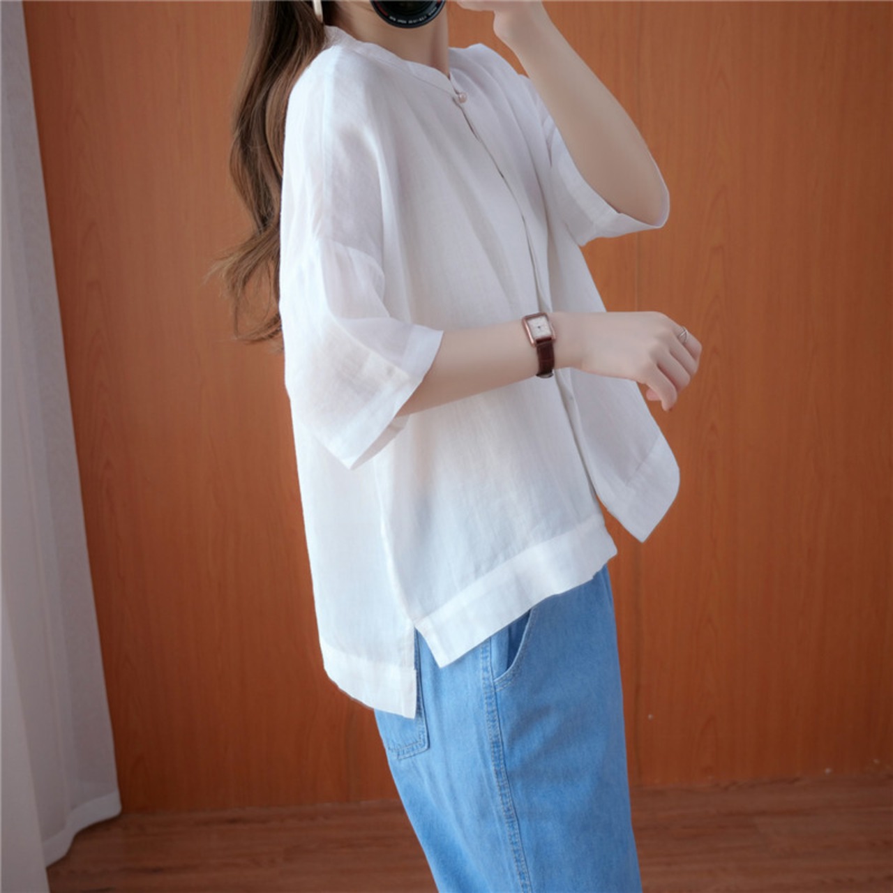2021年無地Tシャツシャツ夏新作文芸レトロルーズダークボタンスタンド襟半袖シャツカーディガン女性 ショート ハーフスリーブ サマー 夏物 ソリッドカラー TB2-12 TB2-1234554648164