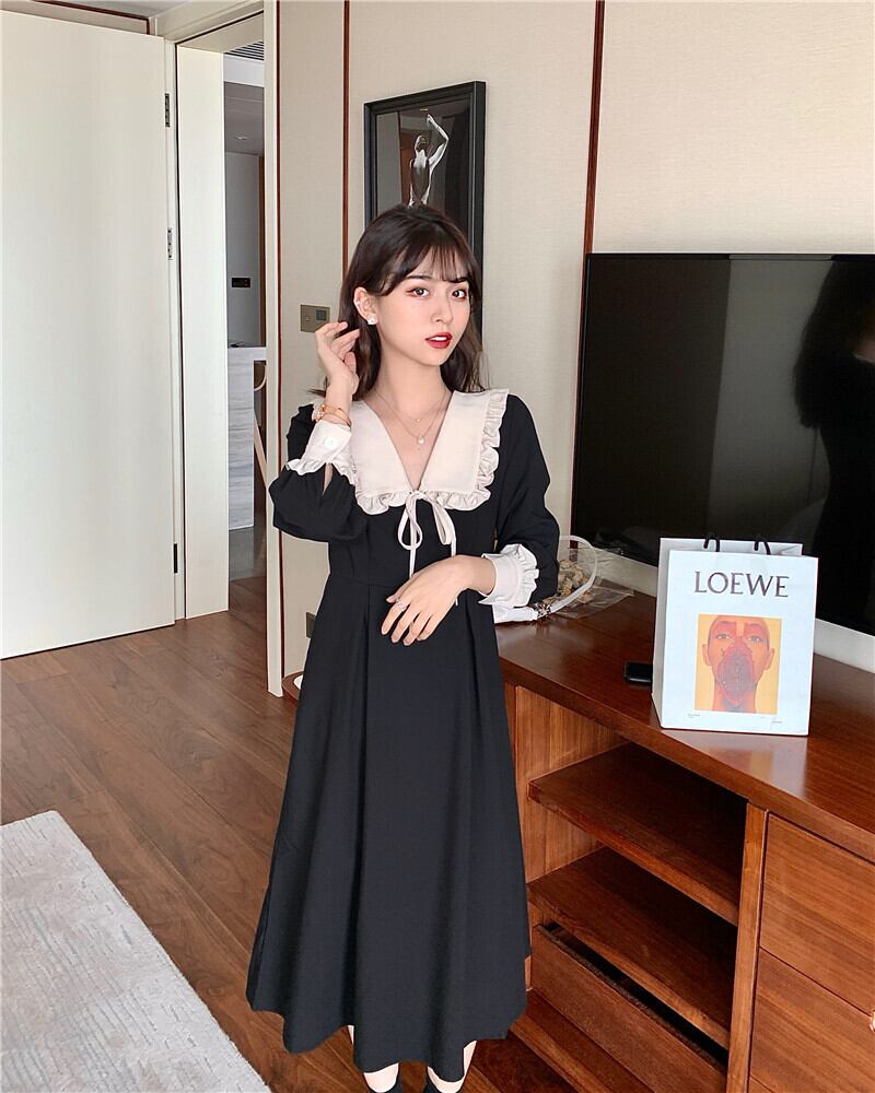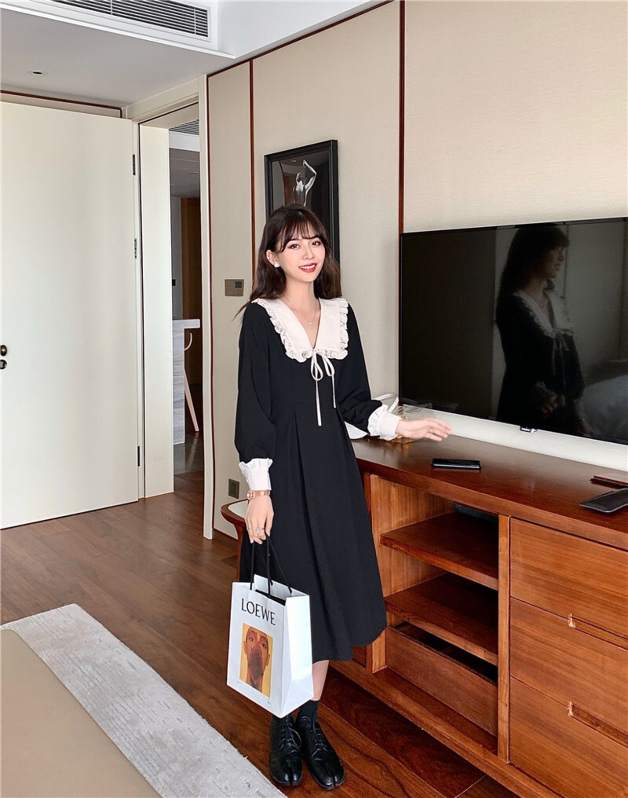 フランスのレトロなプラスサイズの女性の気質の女神ファンウエストドレスヘップバーンスタイルの肉を覆う小さな黒いドレス太った姉妹mm ブラック 大きめサイズ TB2-10 TB2-1081672511758