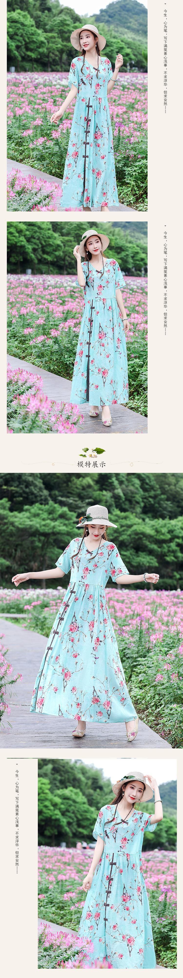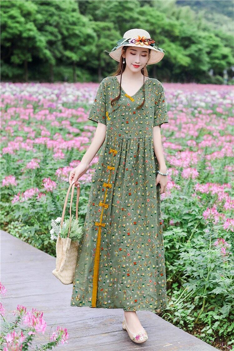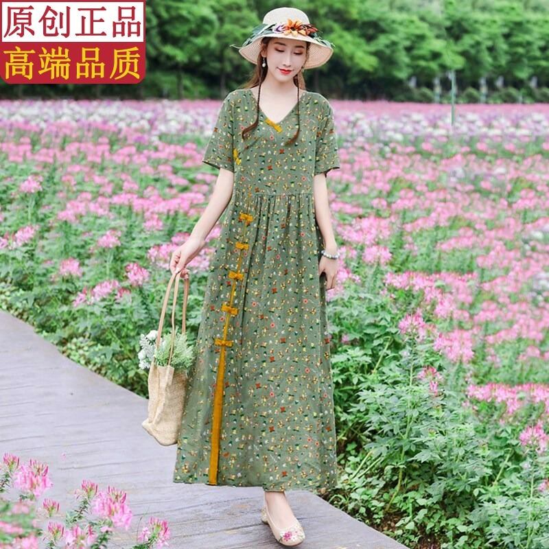 エスニックスタイルのレトロなディスクバックルフローラルコットンとリネンのドレス女性2021年夏新しいルーズで薄い大きなスイングドレス サマー 夏物 花柄 TB2-12 TB2-1259664861889