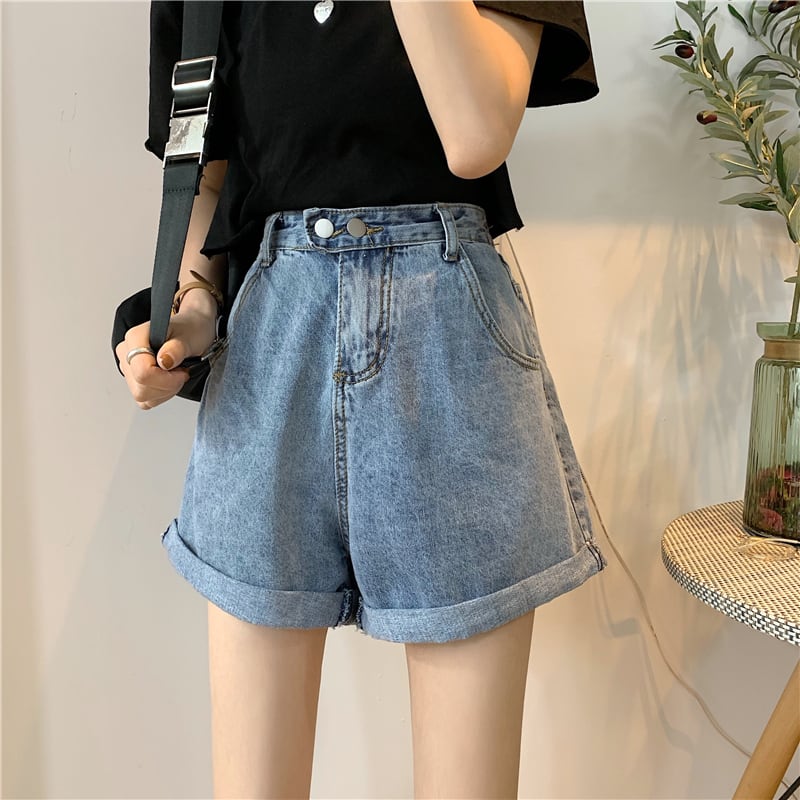 -ウエストデニムショーツ女性夏バージョンルーズワイドレッグaライン細い伸縮性ウエストヒップ太もも太ももパンツ エラスティック サマー 夏物 ブルマー TB2 TB259887047412