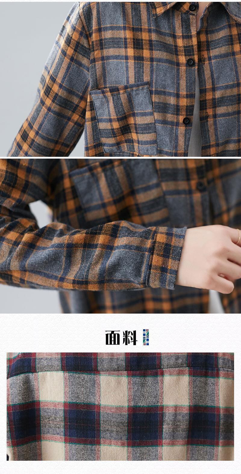 2020年春秋新作文芸イレギュラーコットン&リネンルーズカジュアルチェック柄シャツレディースミドル丈オールマッチカーディガン スプリング 春物 オータム 秋物 TB2-11 TB2-1177376780804