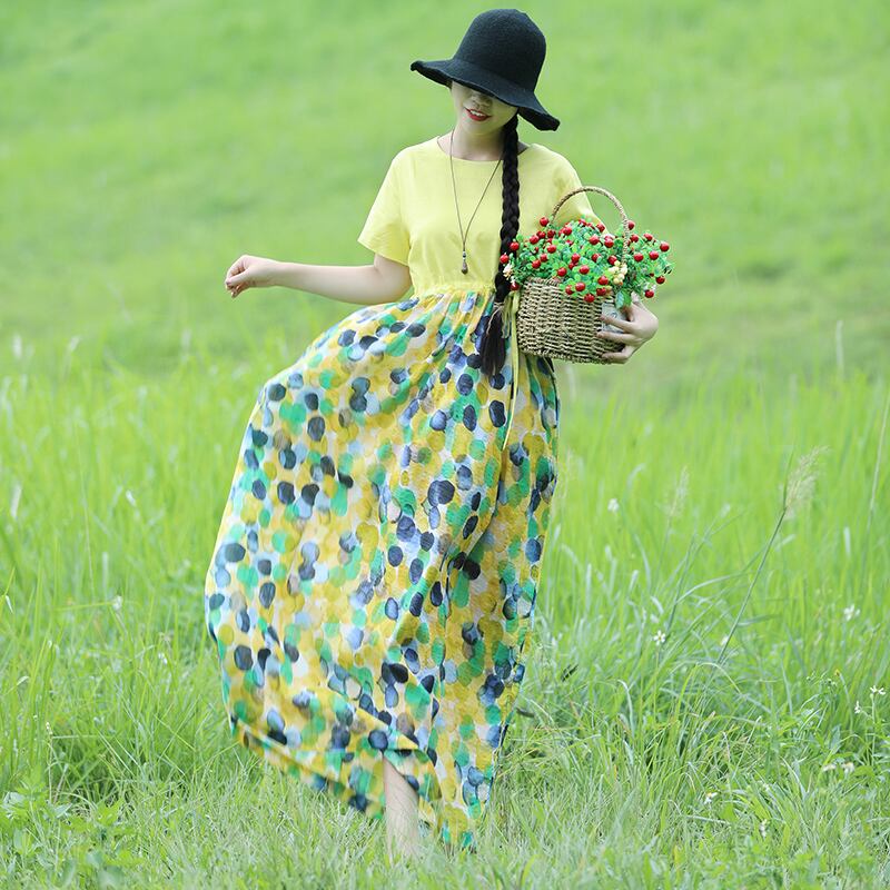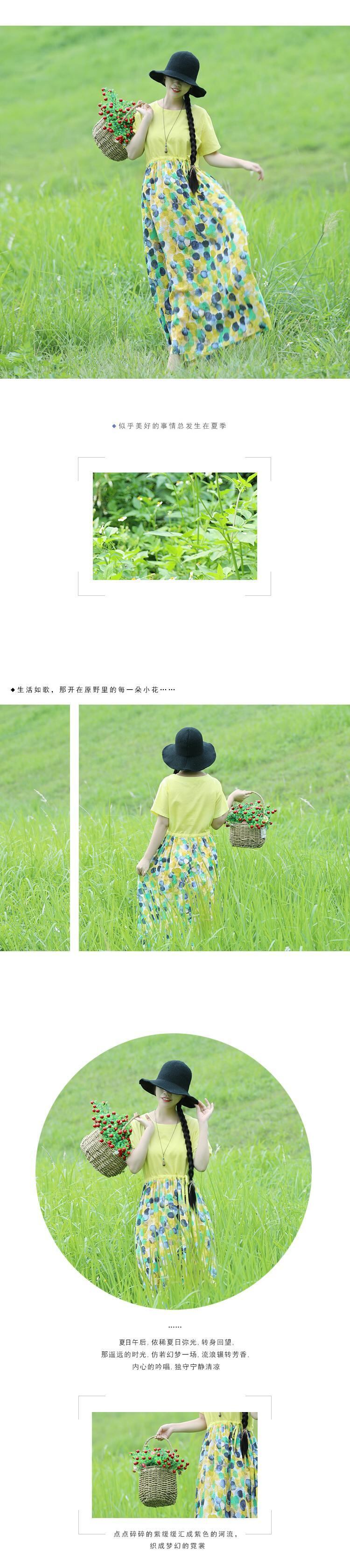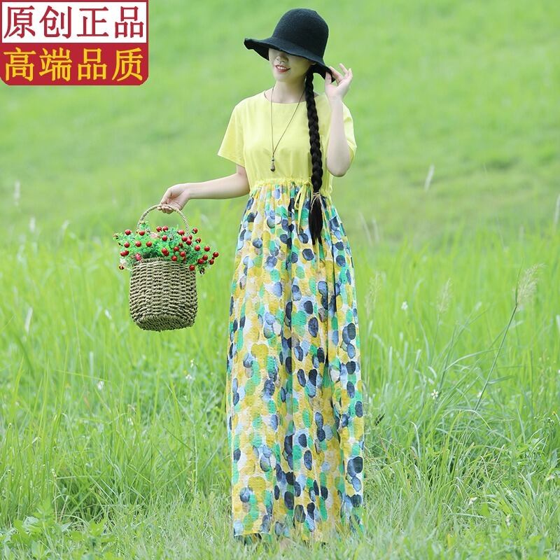 2021年夏の文学と芸術の大きなサイズの綿とリネンの気質のドレスと水玉の伸縮性のあるウエストの女性のリネンドレス コットン エラスティック 大きめサイズ サマー 夏物 TB2-12 TB2-1231487170933