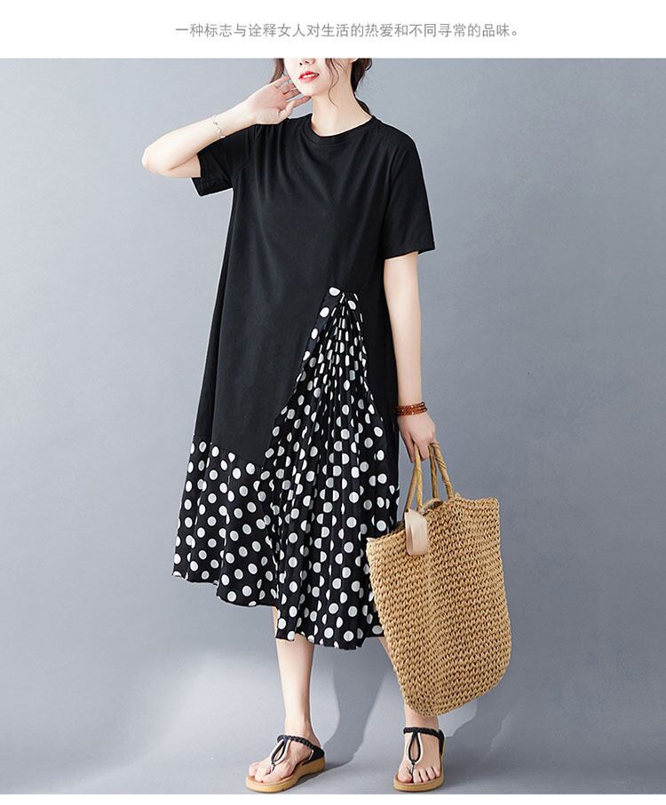 水玉ドレスレディースミドル丈ルーズラージサイズは細くて薄いステッチでした2020新しいスカートの女性の夏の黒 ブラック 大きめサイズ サマー 夏物 TB2-11 TB2-1113489682902