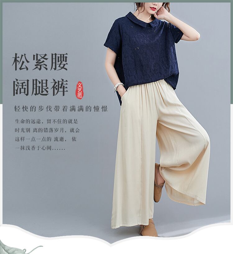 2021年夏のテンセルジーンズレディースシンストレートエラスティックアイスシルクワイドレッグパンツレディースハイウエストシンドレープパンツ 伸縮 サマー 夏物 TB2-12 TB2-1283369682872