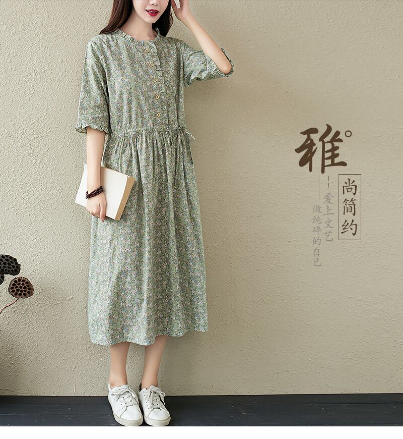 2021年新作センスタイルクワイエットフローラルコットンルーズリテラシーレトロベースドレスミドル丈スカート女性 花柄 TB2-12 TB2-1257438618833