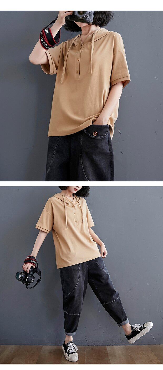 フード付きTシャツ女性用半袖2021年新作プラスサイズ女性用サマーコートカジュアルカバー腹縮小年齢ベースシャツ 大きめサイズ 夏物 TB2-8 TB2-879954669269
