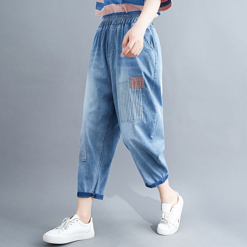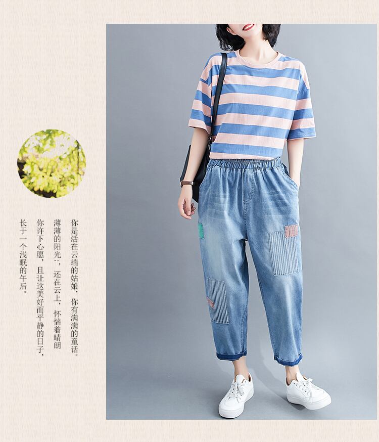 2020年夏の新しい薄いテンセルジーンズの女性は薄い文学的なストライプパッチステッチクロップドハーレムパンツトレンドです サマー 夏物 TB2-8 TB2-825701415729