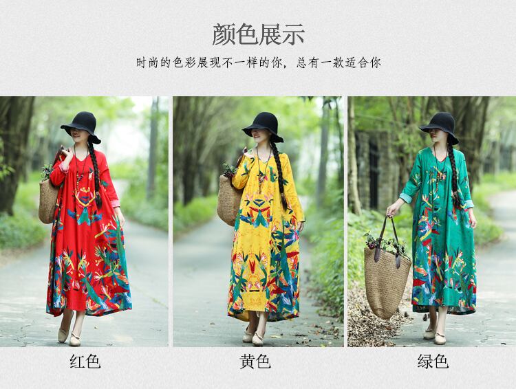 2021年春のエスニックスタイルのコットンとリネンのロングドレス新しいレトロな文学プリントVネック長袖ドレスの女性 スプリング 春物 TB2-12 TB2-1262449694580