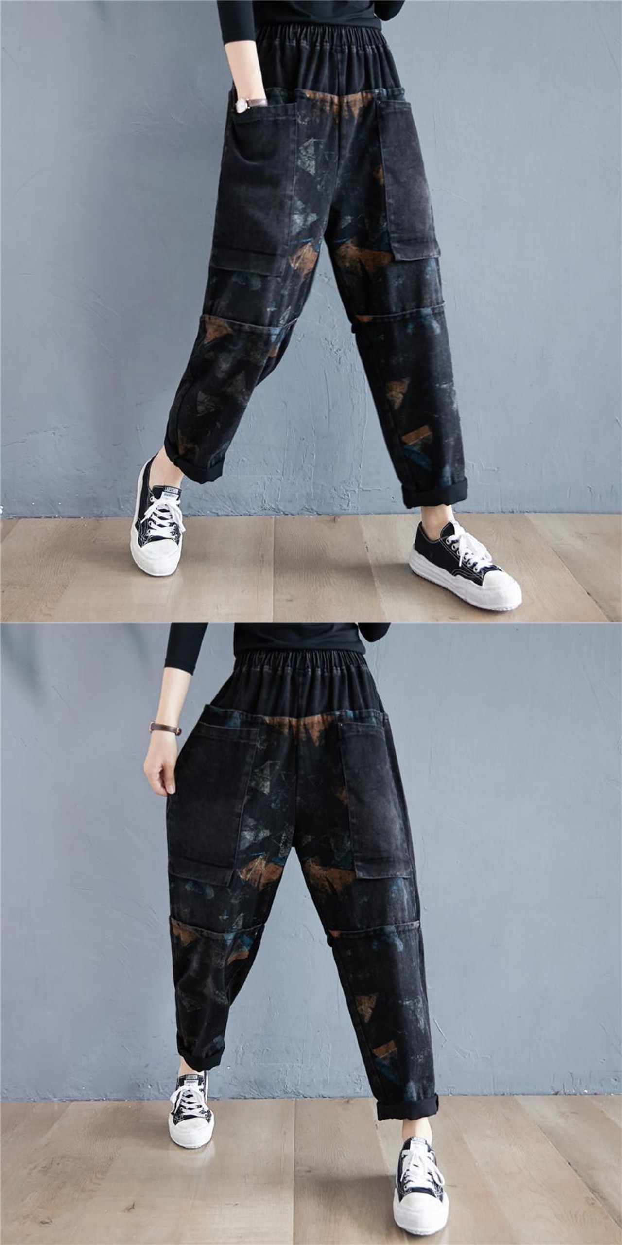 ぬいぐるみジーンズレディース2020年冬新作ルーズラージサイズカジュアルワイルドパーソナリティプリント厚手のハーレムパンツは薄手 大きめサイズ ウィンター 冬物 TB2-8 TB2-815086120021