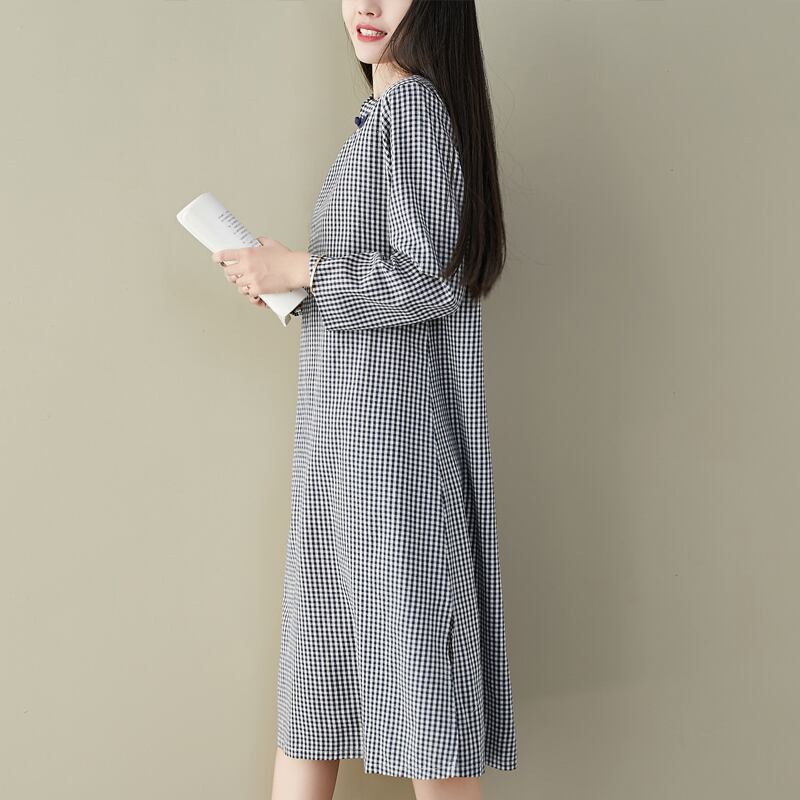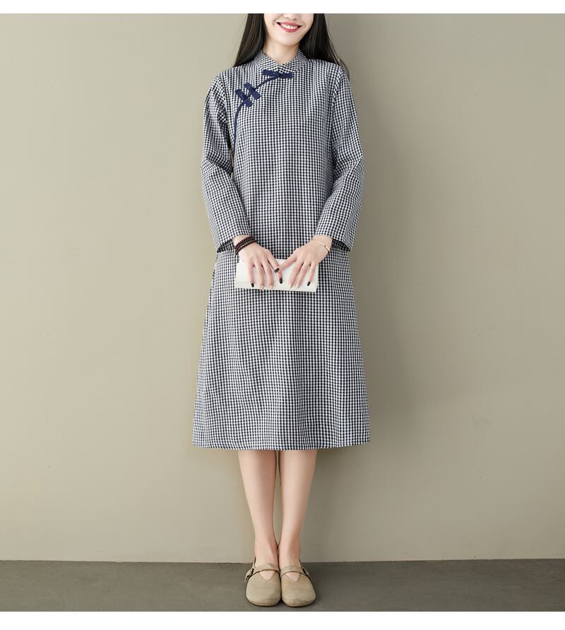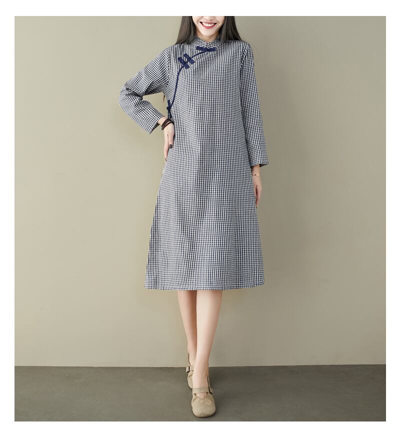 2021年春の新しいレトロディスクバックル中国風ティースーツ文芸綿とリネン長袖ドレス女性 ロング コットン スプリング 春物 TB2-12 TB2-12423117494