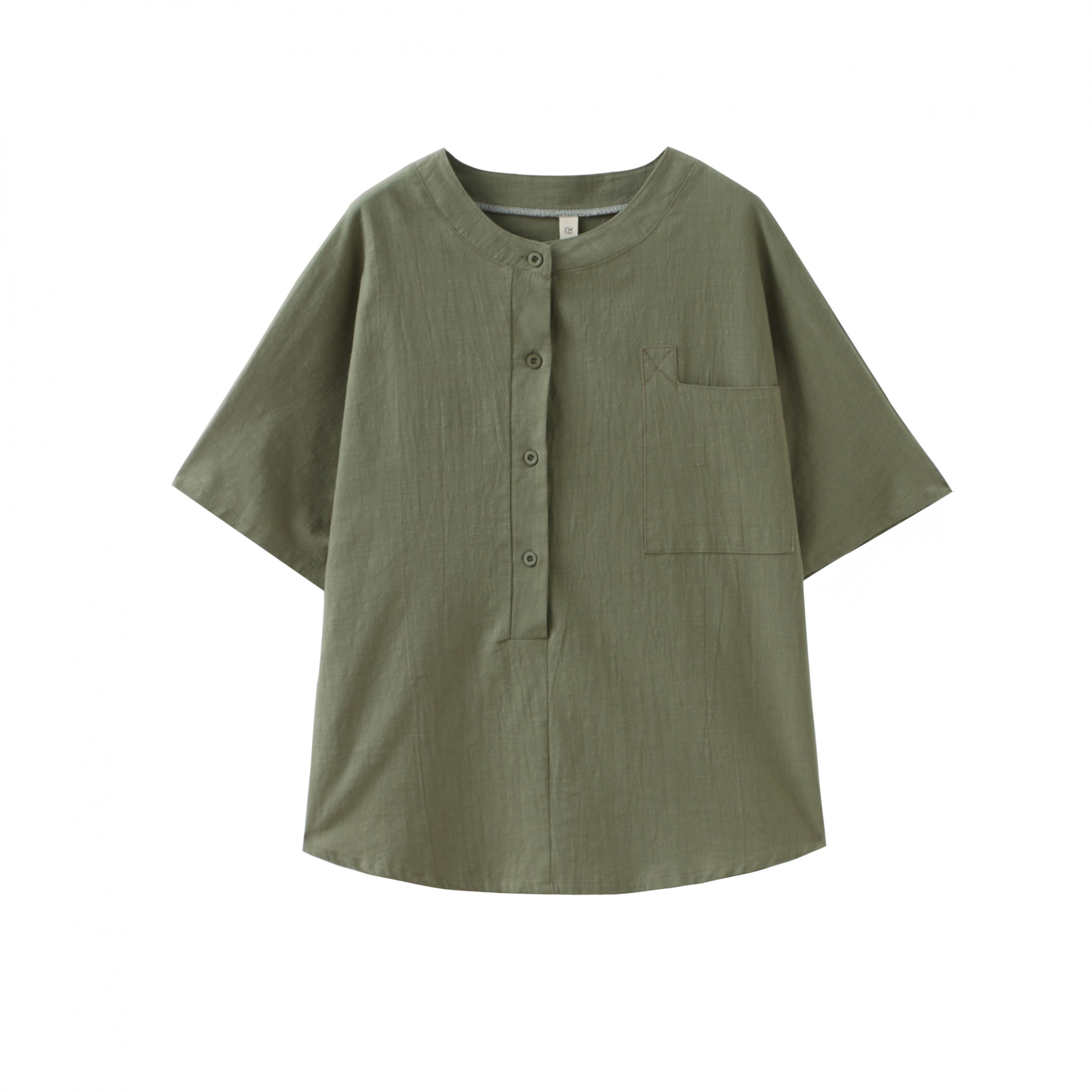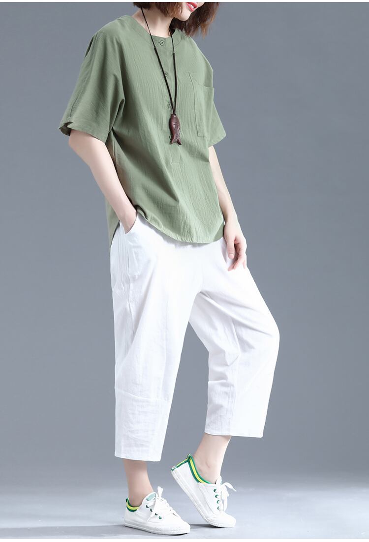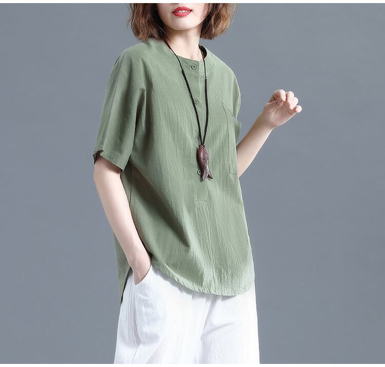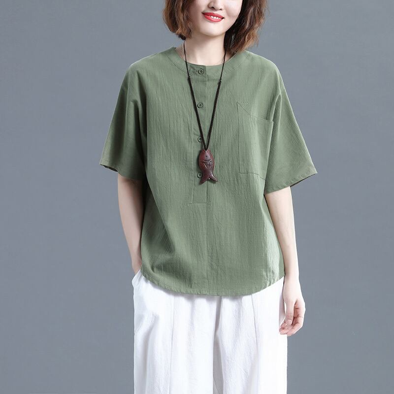2020年夏の新しいスタイルのコットンとリネンのプルオーバーシャツの女性のレトロな文学的な半袖Tシャツラウンドネックルーズ無地のトップ サマー 夏物 Oネック ソリッドカラー TB2-12 TB2-1293046006823