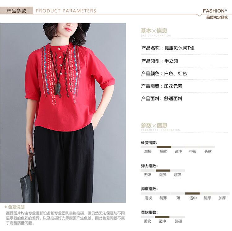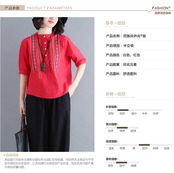 ラージサイズの女性の脂肪mm新しい夏のエスニックスタイルのルーズなスタンドアップカラーシャツ薄い文学的なリネン刺繍半袖シャツ 大きめサイズ サマー 夏物 TB2-8 TB2-899184071652