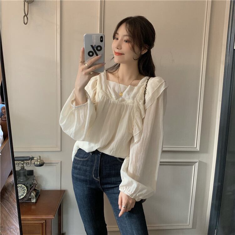 フレンチスクエアカラーフリル長袖ブラウス春秋ルーズワイルドデザインニッチドールシャツシャツ ロング スプリング 春物 オータム 秋物 スクウェア TB2 TB21696393762