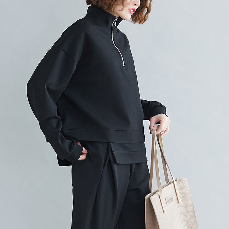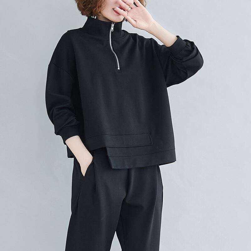 プラスサイズの女性の2020年春の不規則なジッパー付きの不規則な裾のハーフハイネックプルオーバーセーターの新しいルーズバージョンは薄いです 大きめサイズ スプリング 春物 TB2-8 TB2-891273951312