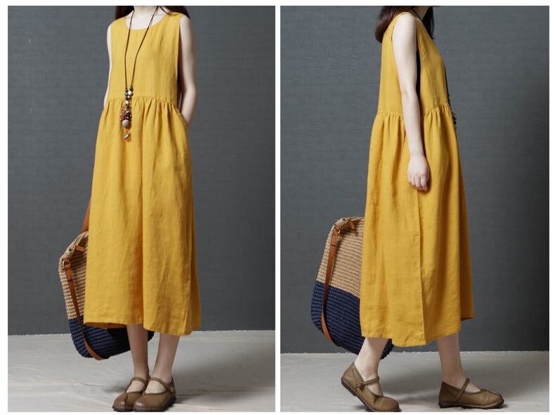プラスサイズの女性の夏のルーズカジュアルリネンaラインスカートノースリーブ無地無地ベストロングスカートコットンとリネンドレス 大きめサイズ サマー 夏物 ソリッドカラー TB2-12 TB2-1259131108647