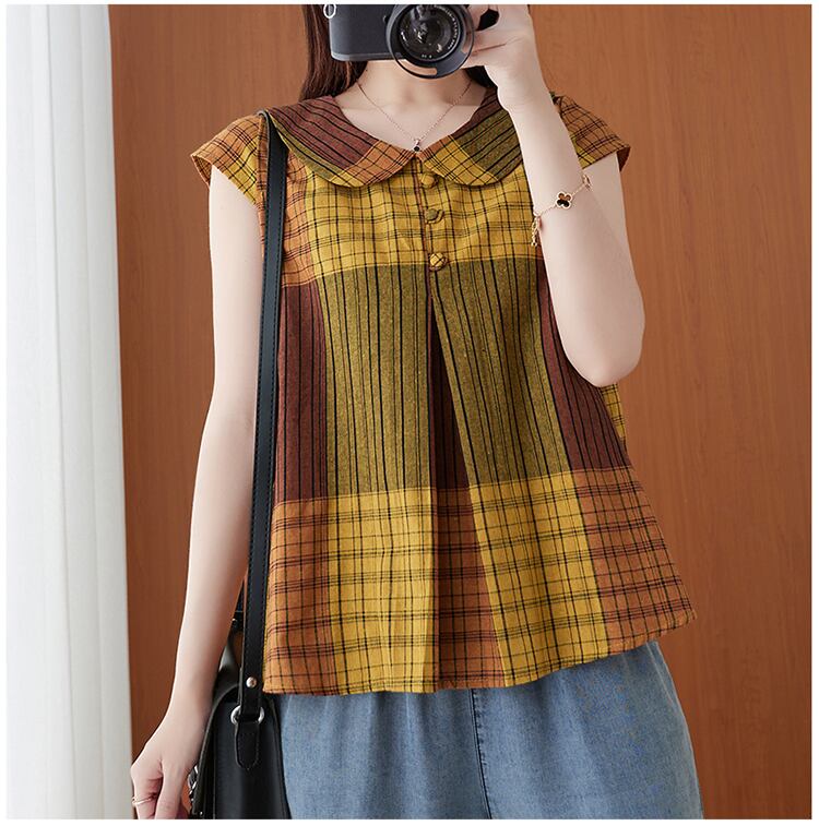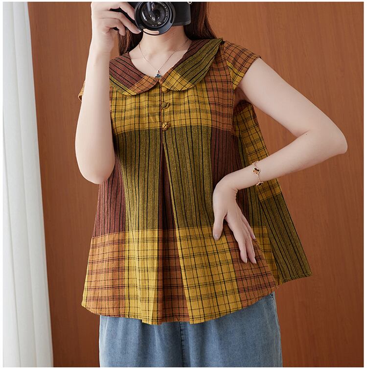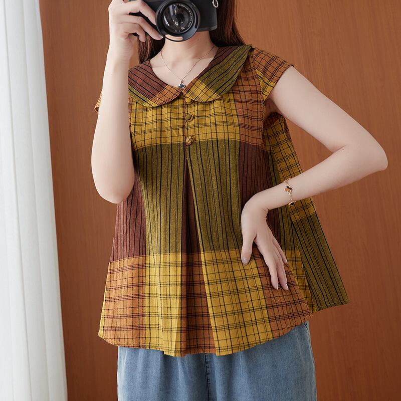 チェック柄シャツの女性は2021年夏の新しいオールマッチの薄い半袖カジュアルドールシャツシャツの女性を緩めます サマー 夏物 TB2-12 TB2-1259178841554