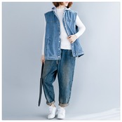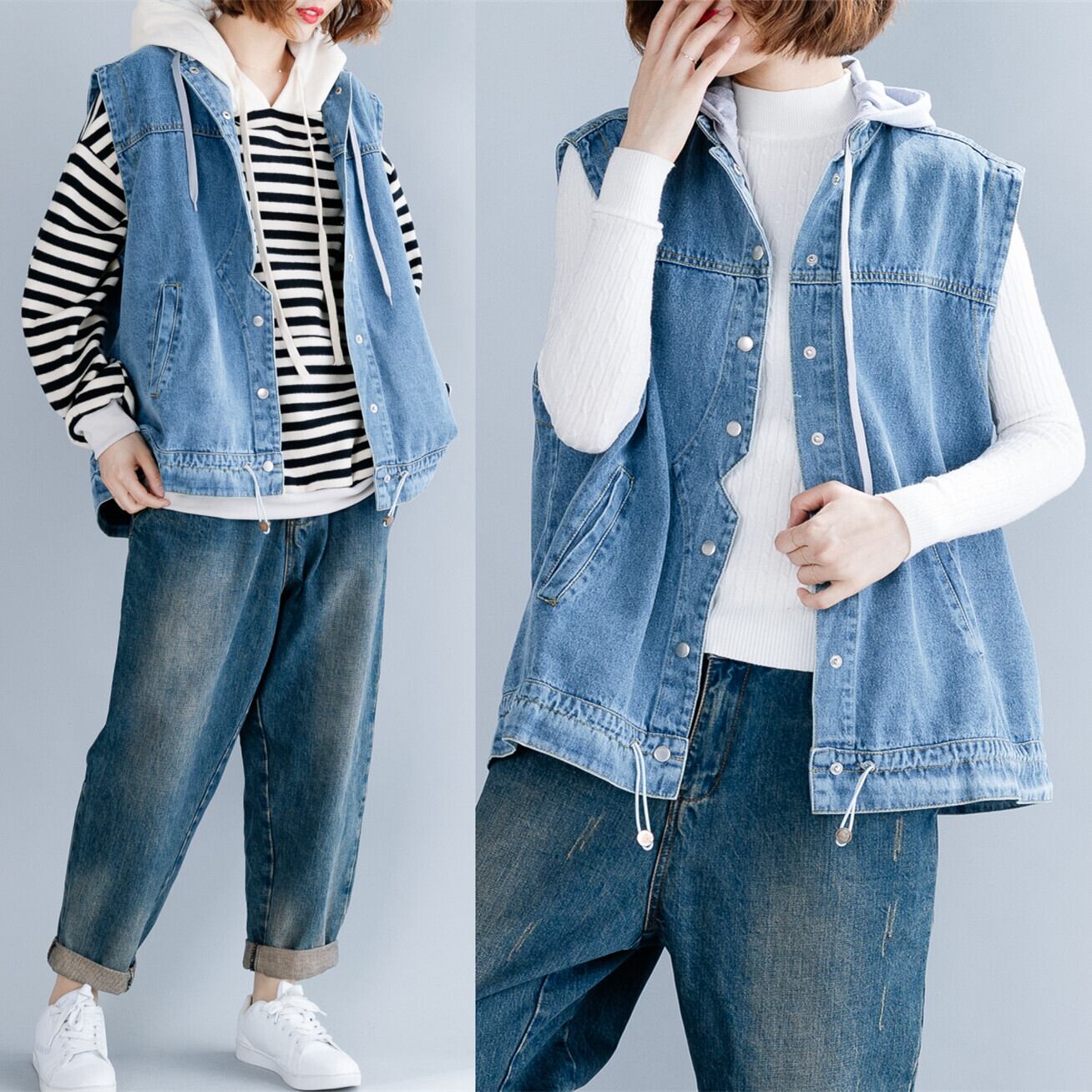 Xiaofeijia〜デニムベスト女性春秋ルーズラージサイズフード付きチョッキベストジャケットチョッキカーディガン 大きめサイズ スプリング 春物 オータム 秋物 TB2-8 TB2-887388203518