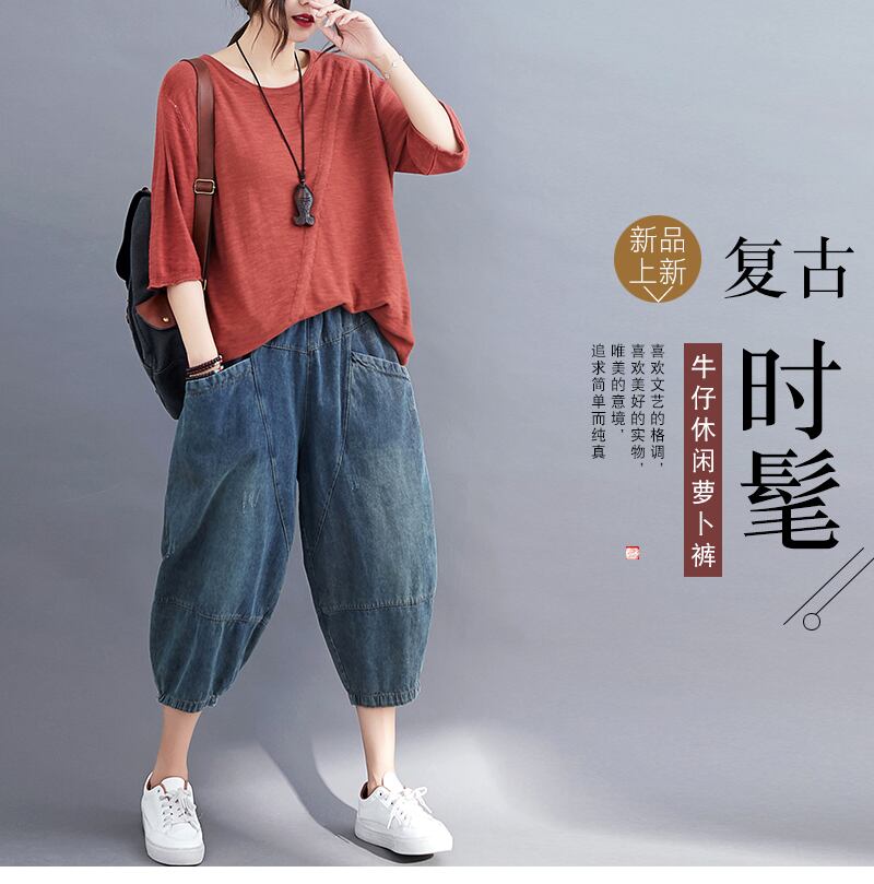 デニムクロップドパンツウィメンズ2020夏新作ルーズラージサイズウィメンズパンツは細くてハイウエストの足ハーランキャロットパンツトレンド 大きめサイズ サマー 夏物 TB2-8 TB2-898753159821