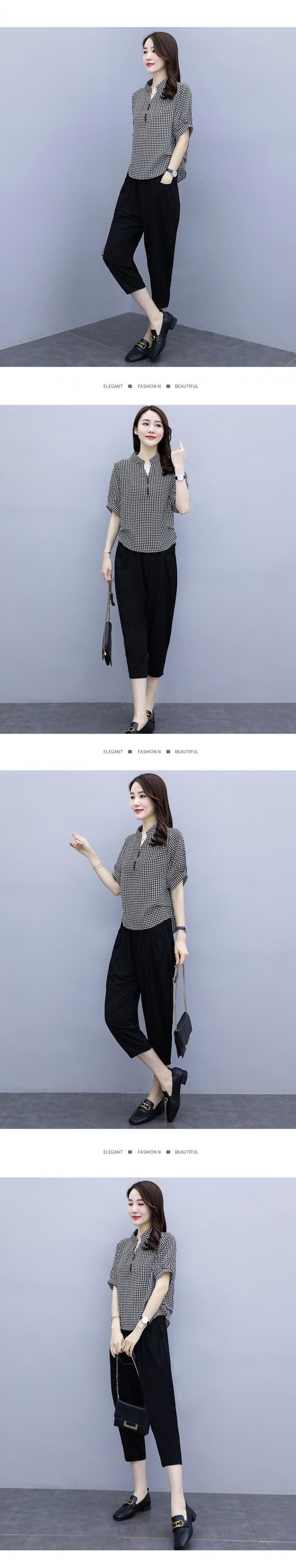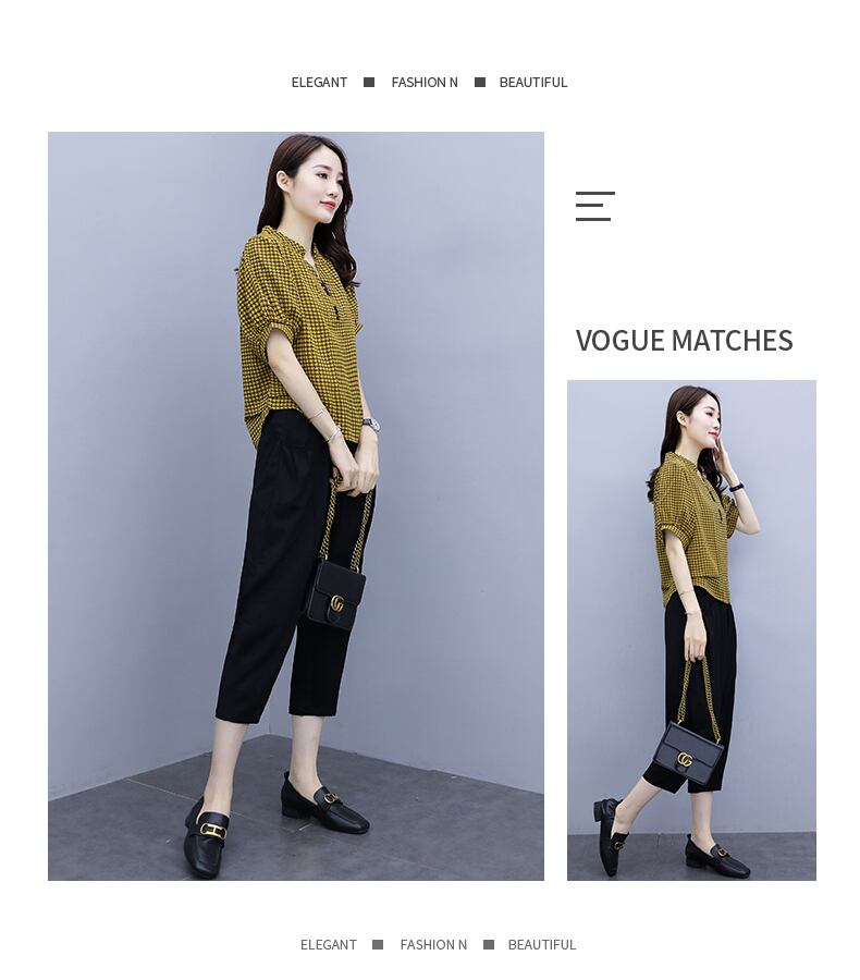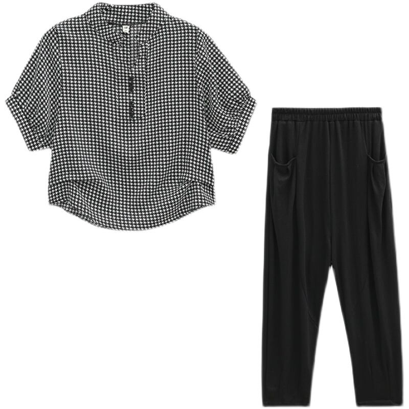 2021年夏のファッションプラスサイズの綿とリネンのスーツ女性の半袖千鳥格子トップルーズクロップドカジュアルパンツツーピーススーツ コットン 大きめサイズ サマー 夏物 TB2-12 TB2-1242674807286