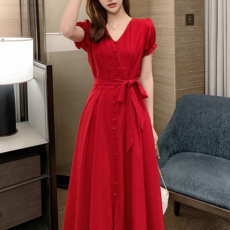 ファットシスターmm女神ファンチャオシアンロングスカート女性プラスサイズレディースドレスウエストは薄めの気質レトロフレンチドレス夏 大きめサイズ サマー 夏物 TB2-10 TB2-1092616805208