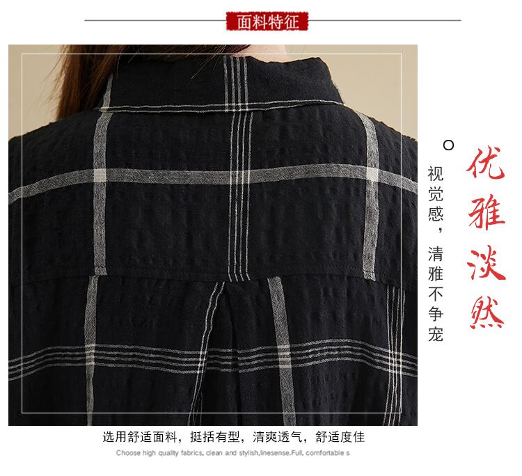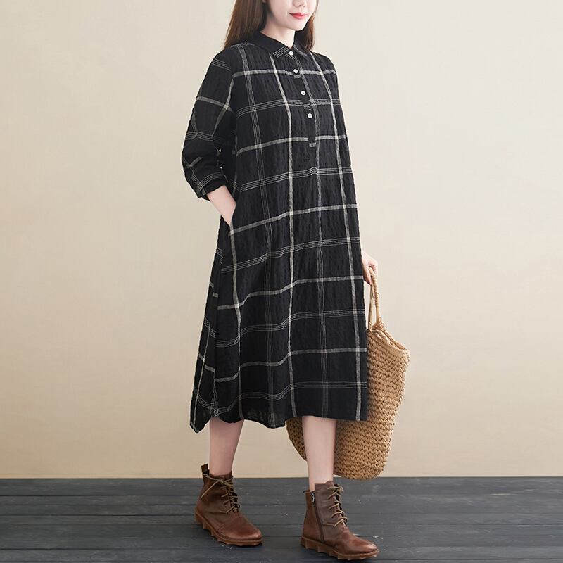 2021年春の新しい文学レトロチェック柄長袖コットンとリネンドレスルーズファットmmカジュアルシャツスカートロングスカート スプリング 春物 TB2-12 TB2-1246222547823