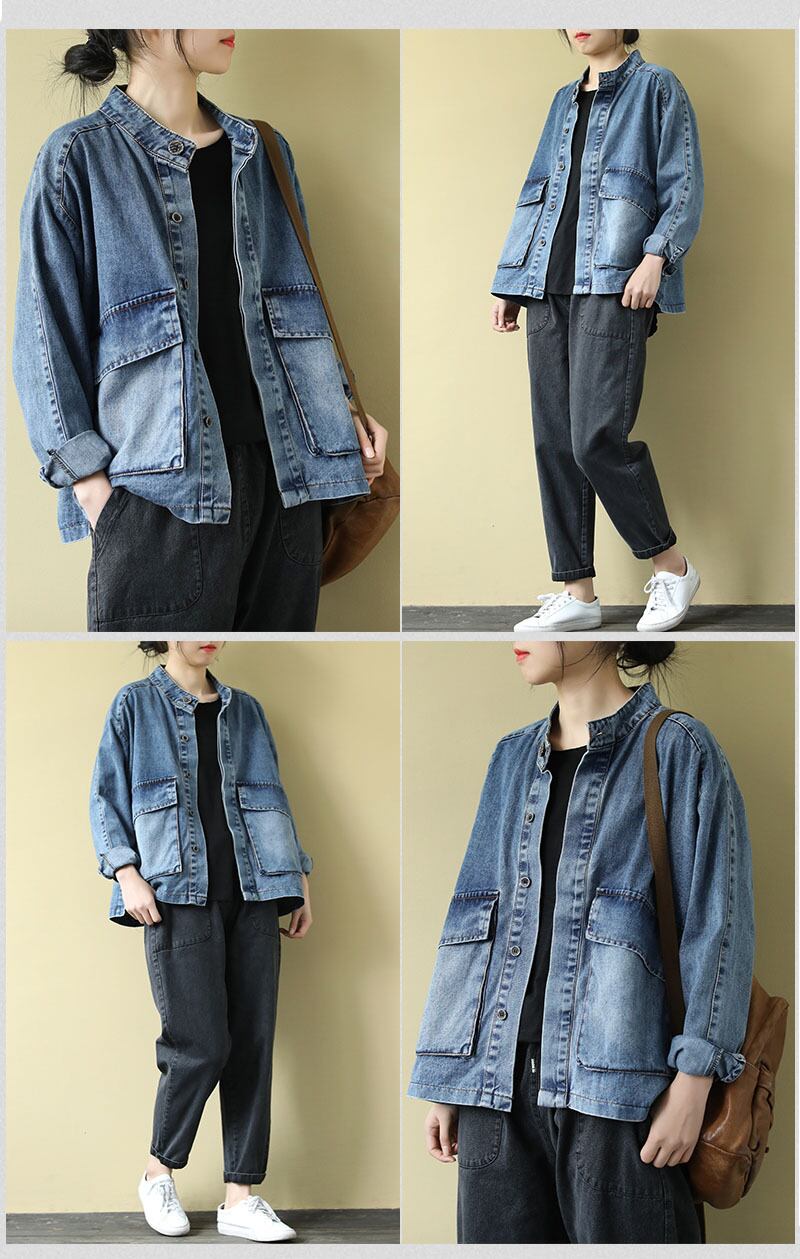 2020プラスサイズルーズリテラリー長袖デニムジャケット春の新作スタンドカラーウォッシュオールマッチカジュアルショートジャケット ロング 大きめサイズ スプリング 春物 TB2-11 TB2-119882496842