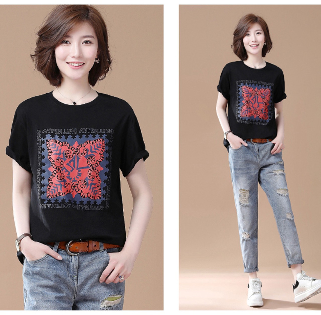 プラスサイズのレディース2019初夏の新しいレディースエスニックスタイルのプリント半袖Tシャツレディースカジュアルルーズトップのバージョン 大きめサイズ サマー 夏物 TB2-11 TB2-1130992606605