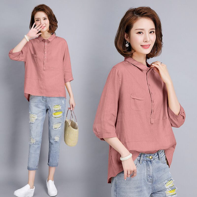 コットンとリネンのトップレディース2020夏の新しいレディーススタイルのラペルリネンシャツカジュアルな薄いラミー服 サマー 夏物 TB2-11 TB2-1138151574397
